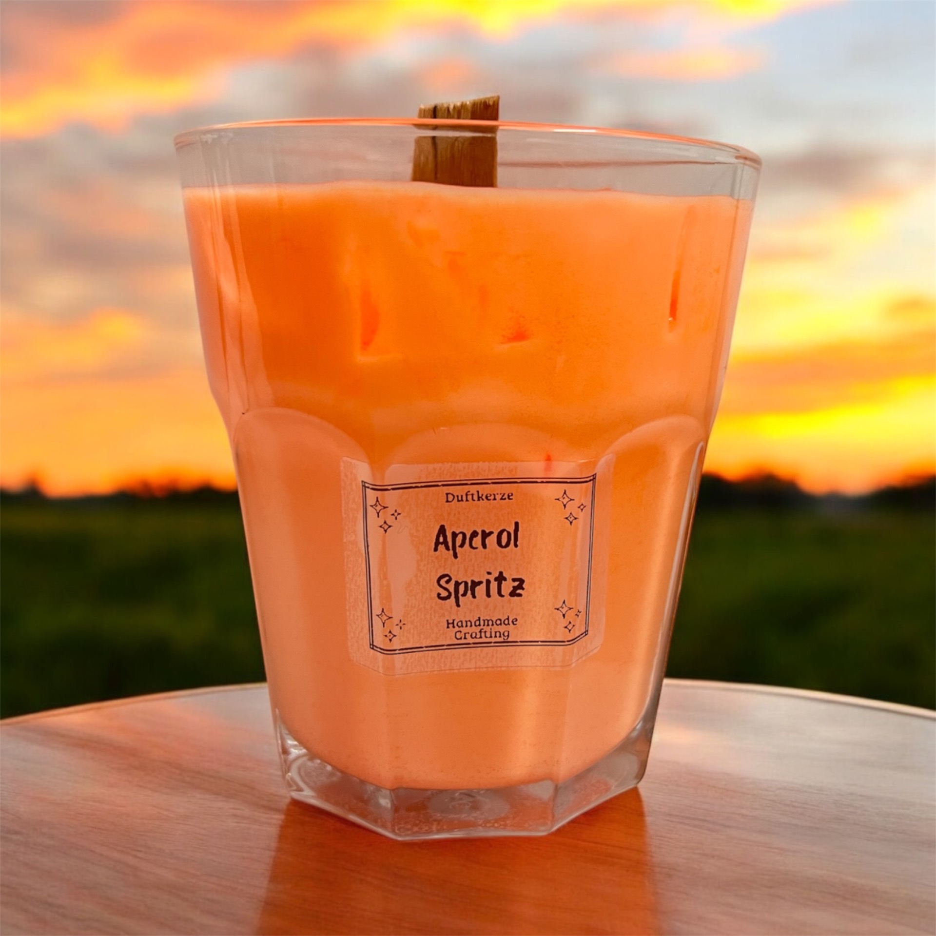 Genieße die erfrischende und belebende Atmosphäre des Sommers mit unserer Duftkerze "Aperol Spritz". Der spritzige Duft von sonnengereiften Orangen und spritzigen Zitronen erinnert an den beliebten italienischen Aperitif und verbreitet gute Laune. Die Kerze besteht aus 330g natürlichem Sojawachs und einem einzigartigen Gelee, das für eine lange Brenndauer und einen intensiven Duft sorgt.